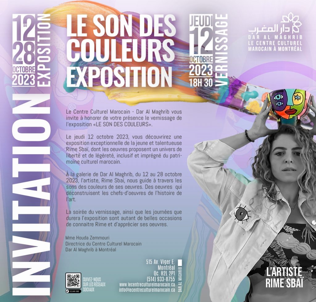 FR| EN below Du 12 octobre au 12 novembre 2023, j’ai eu l’immense plaisir d’exposer mes œuvres au Centre Culturel Dar Al Maghrib à Montréal. Pendant un mois, cet espace a accueilli ma série The Sound of Colors, accompagnée de…